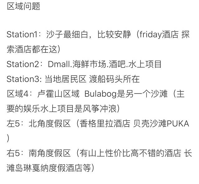 ● 长滩岛码头S2:最繁华的中心,吃喝玩乐都方便。这里到处都是度假村、餐厅、酒吧、商店、小摊和按摩店,从早到晚热闹非常。住在这里,无论你想进行什么活动都很方便。不过由于人多繁华,沙滩风景就稍微打了点折扣。酒店档次和价格都低于S1,当然房间设施、豪华度和舒适度也低于S1。