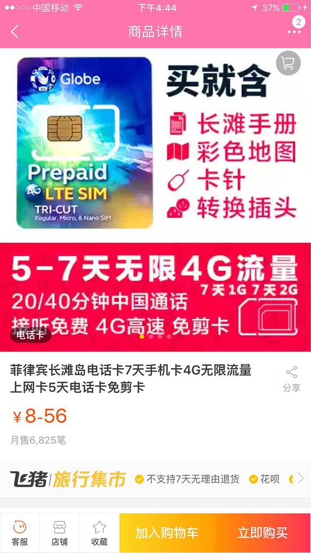 在菲律宾购买当地预付费SIM卡,面值100、200比索,酒店、超市、商店都可买到。