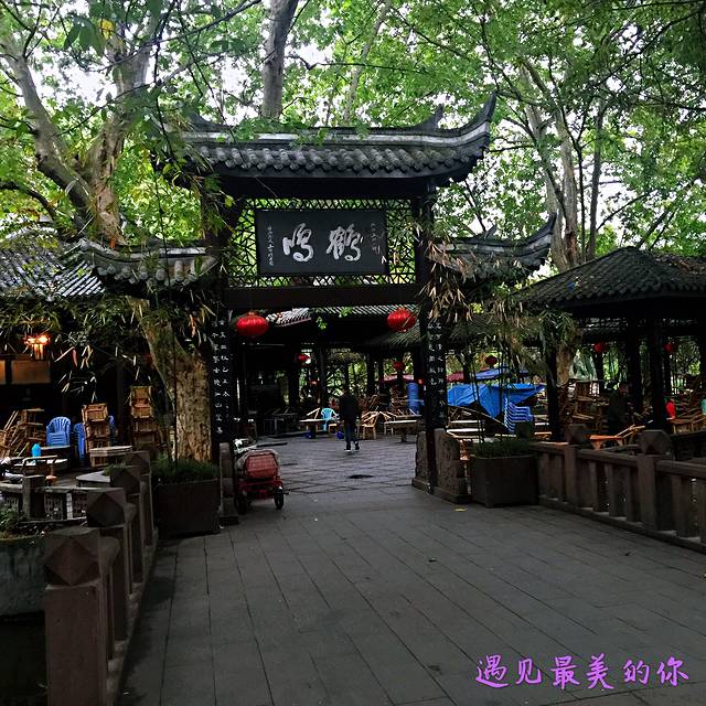 在到人民公园的门口时,突然在路对面看到了老妈蹄花总店(看攻略都说好吃),当时那个激动啊,老公当即就说过去买一碗带上,结果等了半天看见他两手空空的回来了,又是排队排队,成都啊,你这美食对于我这种不爱凑热闹的人是吃不上了,又带了一个遗憾。人民公园里花木丛生,我是很喜欢这样的公园,我们慕名来到了鹤鸣茶社,要了两碗茶,虽然已经不下雨了,但坐到院子里还是有些许凉的,不过感受一下成都人的慢生活也是不错的,看着很多人都在掏耳朵,我也好奇的尝试,不过这个体验并不好,感觉给我掏耳朵的师傅好敷衍啊,不到5分钟就搞定了,可能生意太多了,着急做下一个吧,30元就这么几分钟没了。坐了大概1小时,人开始多了,已经座无虚席了。歇息后我们带宝宝到公园里喂锦鲤鱼,竟然发现这里有人拿奶瓶在喂鱼,真是第一次见到这么奇特的喂鱼方式,孩子们也都玩的很开心。