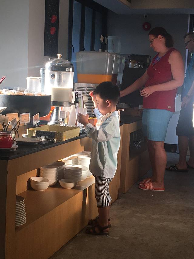 每天都有现做的炒蛋,煎蛋,蛋饼,味道还是不错的,我每天酸奶加谷物,蛋饼,水果塞爆,我们三个都是天天超级顺畅的哈哈。