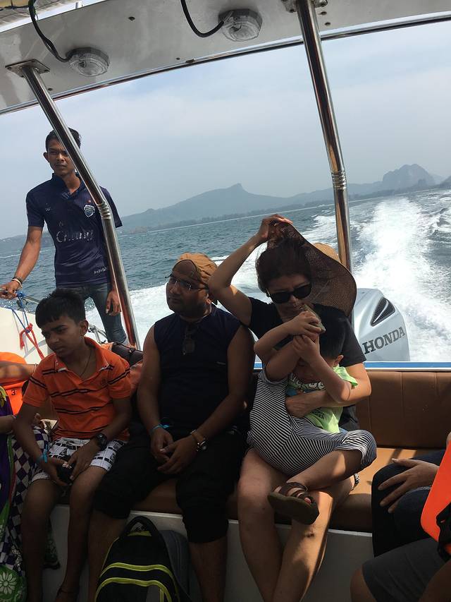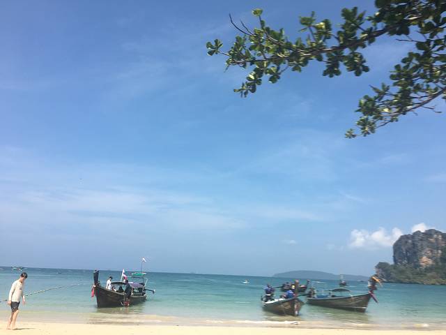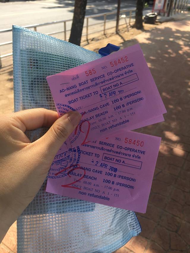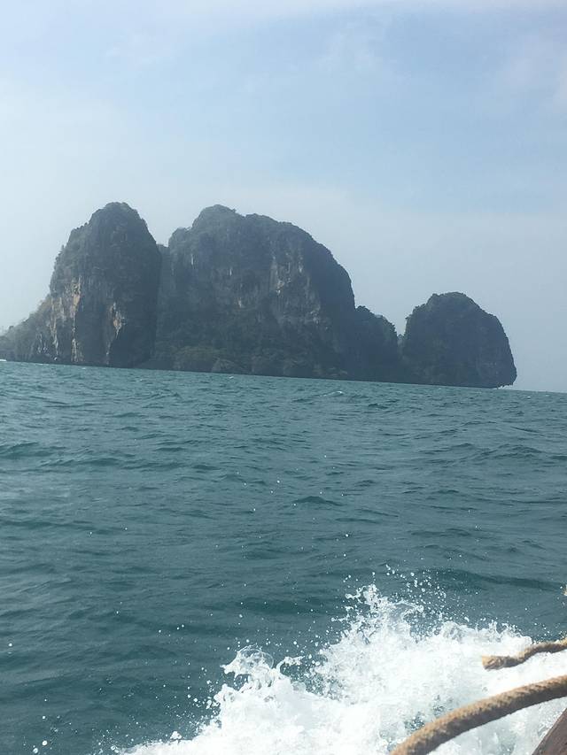 对于Railey的翻译都不一样,所以我这里就索性写英语了,我们从酒店(apple a day)走路过去10分钟就到了奥南码头,自己买票,200泰铢一个人来回长尾船,凑满7个人开船,回来自己决定时间,最晚5点。不包午餐的。船体很高,上个船基本下身全湿,小孩子一定要再多带一套衣物方便替换。