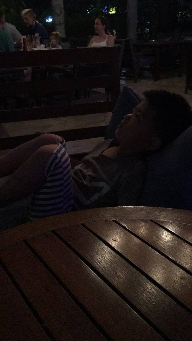 想去lae lay grill看日落吃泰式晚餐,让酒店帮忙预订的,晚上5点半车子来接我们了,先拍照后点餐,那天日落只能说一般,因为我在斐济有看到过更美的,晚餐点了冬阴功(带劲儿),椰子(原汁原味,好喝),菠萝炒饭(干了点)和芒果椰浆饭(超级好吃)3个人只吃了900泰铢(加了服务费后的价格)都不到,所以这顿还算可以的,吃完饭人家还派车给咱送回了酒店呢,服务不错的。
