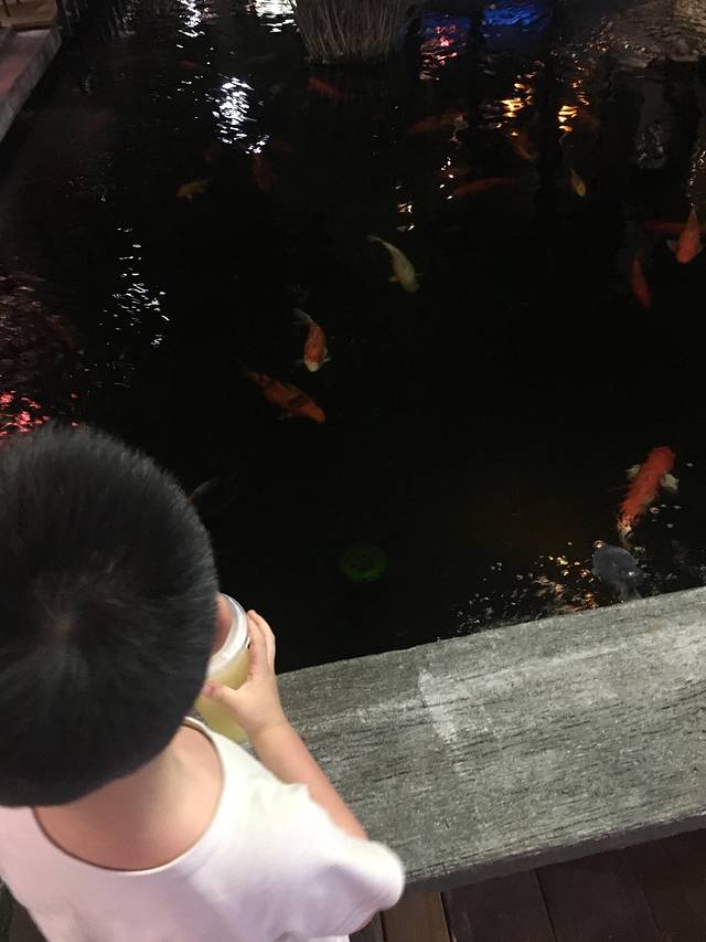 水很清澈啊,怎么就可以这么清啊。。小鱼从身边游过,娃那个激动,小孩子都很喜欢水的。