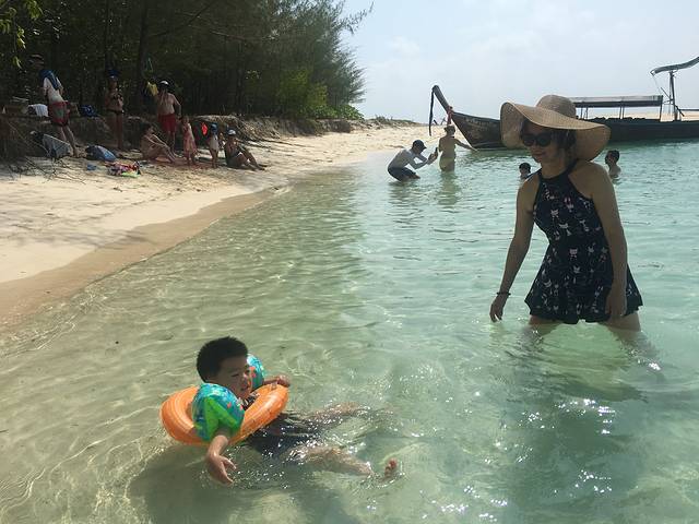 我一想泰国热呀,去海滩吹风,戏水,关键是看肉!但去泰国哪里呢,普吉人一定是扑进扑出的,网上一看,甲米好,有上海直飞的,听说那里人少,老外游客居多,适合带着我妈和我三岁半的儿子。于是我就带着一大一小开始了甲米旅行。。。老妈你终于出国啦哈哈〜〜
