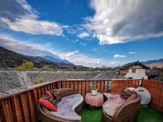 客栈是一家地道的纳西风格小院,庭院古朴大气,环境清幽。植被葱茏,花草葳蕤,三季开花,四季常绿。环境优雅、远离喧嚣、闹中取静、是可以让心灵停靠的一方净土,另外客栈还设有超大露天阳台,公共区域、无线wifi。晨起、您可以独坐院中,沏一壶茶,焚一炉香,躺在摇椅中晒太阳、发呆、听音乐、看书,尽情享受丽江柔软时光,让疲惫的身心得到暂时的休整。