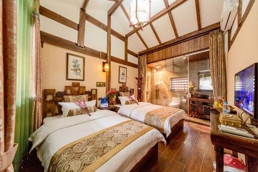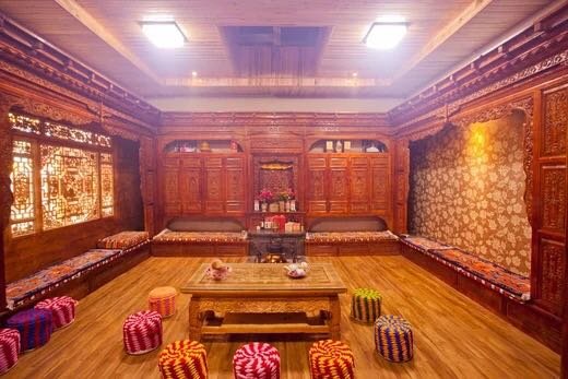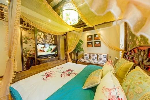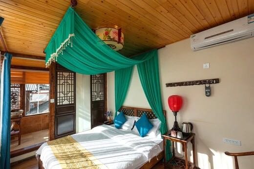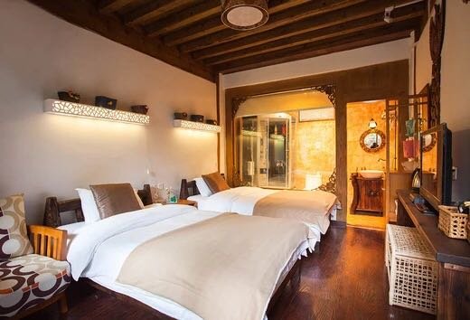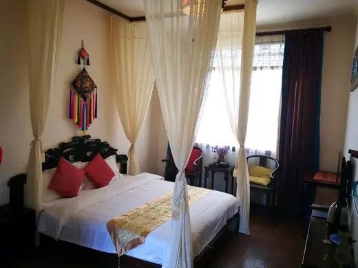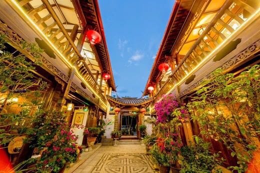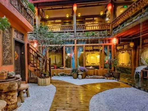 客栈闹中有静,坚固的二层主体木楼镶嵌着精美的雕花木窗,散发着特有的木质清香,青瓦红墙,亭台楼榭,四合天井,走马转角楼,既有纳西院落的古色古香,又有异国情调的生动点缀,院内石景喷泉流水潺潺,花影重重,暗香浮动,让您一踏进客栈就有扑面清新气息。