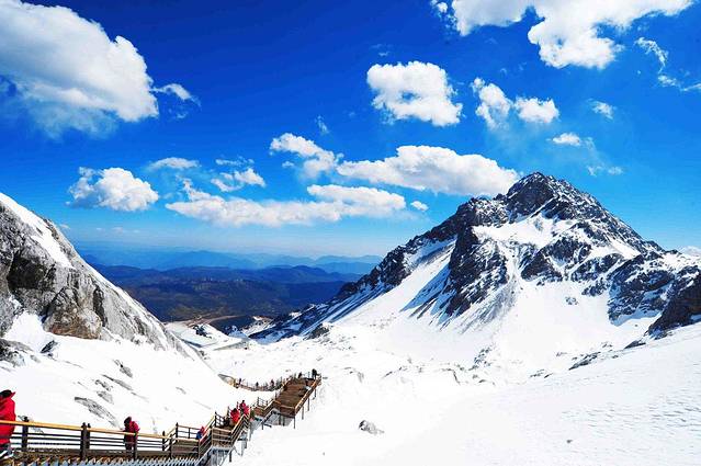 1在玉龙雪山上长时间看雪极易患雪盲症,对眼睛不好,建议带一副墨镜出门。
