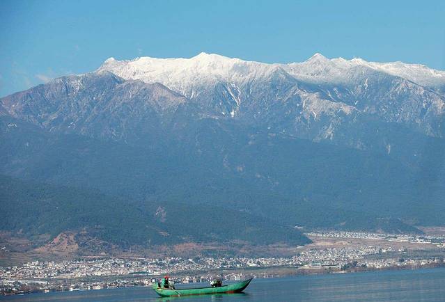 洱海古称“叶榆水”,也叫“西洱河”、“昆弥川”,是由西洱河塌陷形成的高原湖泊,外形如同耳朵,空中俯瞰,洱海宛如一轮新月,静静地依卧在苍山和大理坝子之间。洱海共有三岛、四洲、五湖、九曲,湖水清澈见底,自古以来一直被称作“群山间的无瑕美玉”。在洱海最南端的团山有一座洱海公园,是观赏苍山洱海景色的好处所。