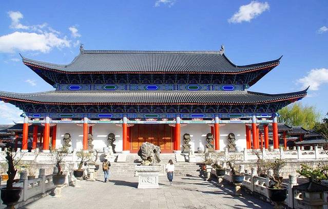 “北有故宫,南有木府”,木府是一座辉煌的建筑艺术之苑,它充分反映了明代中原建筑的风采气质,同时保留了唐宋中原建筑古朴粗犷的流风余韵,而其座西朝东,府内玉沟纵横,活水长流的布局,则又见纳西族传统文化之精神。 丽江旅游有一句话:“不到木府,等于不到丽江”。