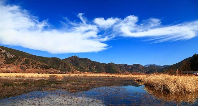 草海因长年泥沙淤积,湖水较浅,生有茂密的芦苇而得名。15000亩草海,是镶嵌在泸沽湖东面的翡翠,几十种水生植物、奇珍异鸟和各种鱼、虾、贝、螺、蛙等构成罕见的生物大观园。草海内芦苇如墙,水路错综,红白衣裙的摩梭姑娘划着猪槽船出没其中,悠扬的“啊哈吧啦”民歌在水草丛中回荡。