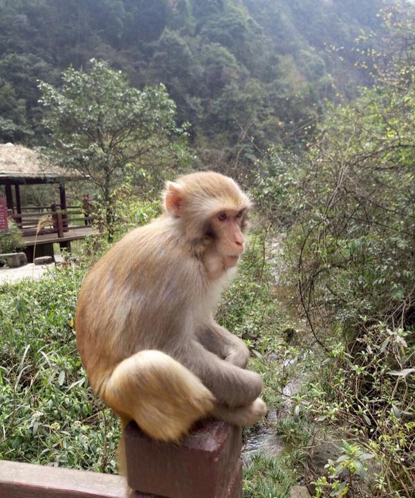 在准备离开的时候,漫步碧潭幽谷,深呼吸一口,能闻到空气淡淡的清甜,朴实而纯美。期间还碰见了路边的小猴,灵动可爱,一下子就把造物者造就的静物面变活了。也可能是长年呼吸山上的仙气,特别聪明,不时像游客讨要食物。