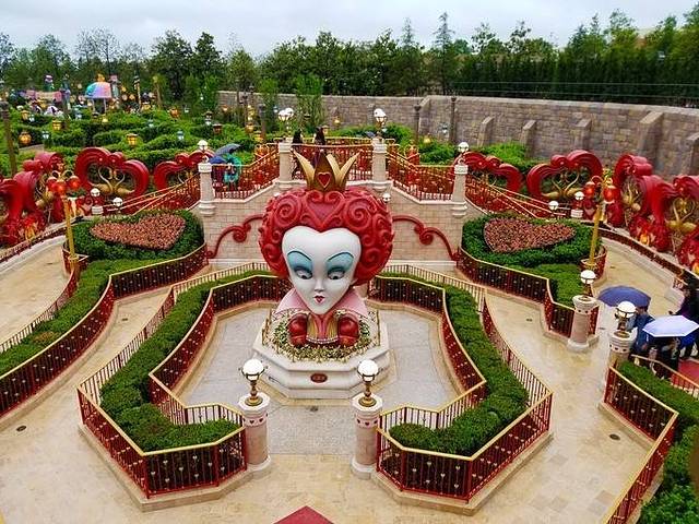 ⑦爱丽丝梦游仙境迷宫(梦幻世界):在这里像是置身童话世界,一入内,就会被红桃皇后的表情所震慑,花园里那一扇扇小门,推开的时候还会对你说话。到这里几乎不用排队,里面还有“哈哈镜”,特别适合爱拍照的宝宝。