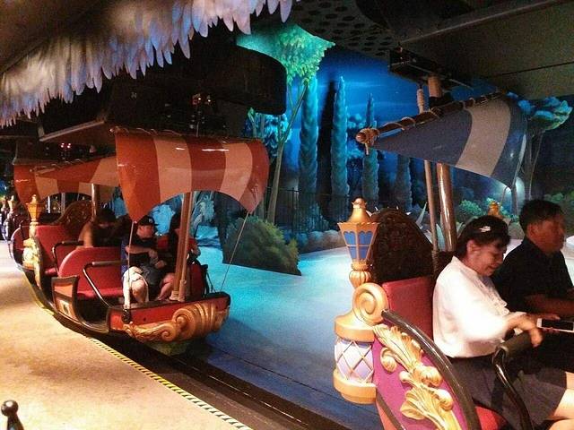 ⑤小飞侠天空奇遇(梦幻世界):小飞侠排的队伍很长但排得挺快,开始后,你会跟着会飞的船,一起走进彼得潘的童话世界里,很多创意点。悬挂式过山车,从屋顶高低冲上冲下,很刺激,很梦幻,非常适合小朋友的项目!