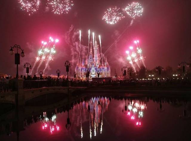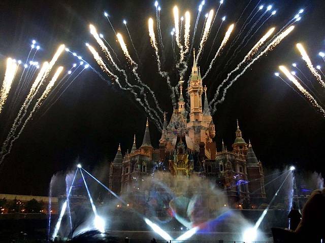 上海迪士尼的点亮奇梦:夜光幻影秀是晚上8点开始的,持续30分钟。如果想要观看效果好一点,建议大家提前半小时去占位,不然就只能在很后面,这样会看不到水幕,但也不要太前面,否则城堡看不全面,烟花是在两侧冲天的。
