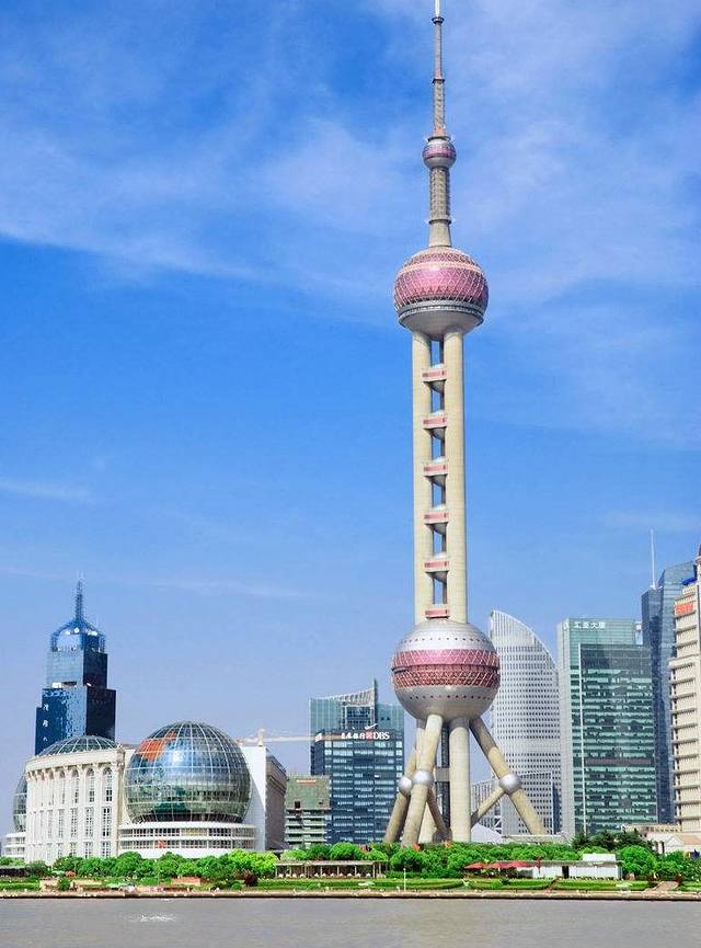 东方明珠广播电视塔(The Oriental Pearl Radio & TV Tower)是上海的标志性文化景观之一,位于浦东新区陆家嘴,塔高约468米。该建筑于1991年7月兴建,1995年5月投入使用,承担上海6套无线电视发射业务,地区覆盖半径80公里。