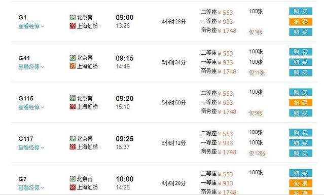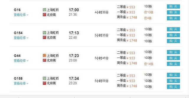 当然要尝试一下复兴号!体验风一样的列车。参考车次G5、G7、G21、G17、G15、G13、G11、G3、G9、G7、G1、G5时间大概是4个半小时。从北京南站到上海虹桥。