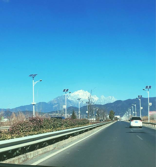 到达丽江已经是快十二点了,我们之前就在网上租好了一辆车,是在一嗨租车机场店租的,租车的商家提前联系好我们直接来机场接的我们,然后带我们去他们店里办手续。路上照了一些风景,天真的很蓝,阳光很好。