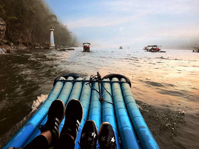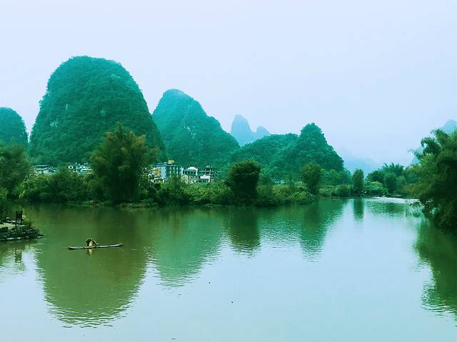 我们在当地报了个一日游游船到阳朔,上半段体验竹筏,下半段游船。3月份的漓江雾气好大,烟雨漓江仿佛游走在仙境中。下午阳光出来成功打卡20元,心愿已了哈哈~下午入住阳朔客栈