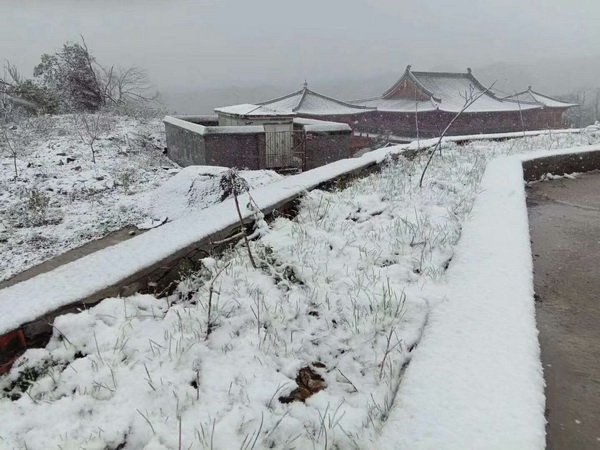 驱车前往,半路就感到丝丝寒意,天气也感觉阴雨绵绵不怎么好。就对这次旅程就没报太大希望了,但却心有不甘的用“来都来了”四个字说服了自己上山。当在半山腰看见有缕缕飞雪飘落,一下子心情就激动了起来,也暗自为自己的无比明智的决定点了无数个赞。