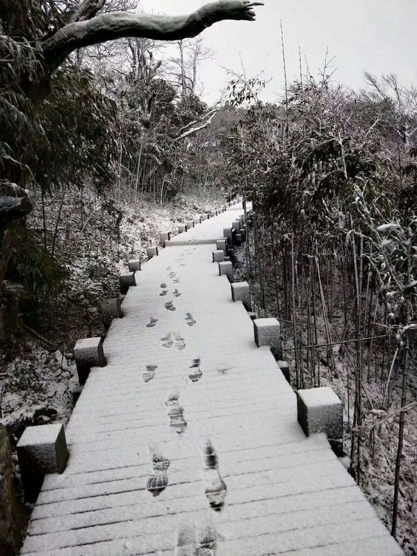 大雪里的金佛山显得格外宁静,也许因为个人喜静的原因,这趟旅程也满足了我的对小长假的所有期望。如果要说唯一的遗憾就是为了安全起见没有去到绝壁栈道真正的体验一下金佛山的险。
