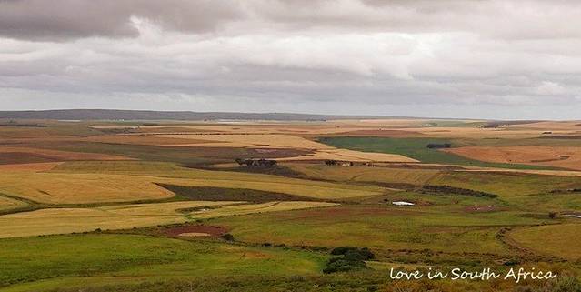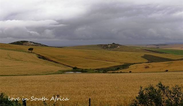 从swellendam小镇出发,有一段远离海边的田园风光,大片大片的麦田和禾草野花相间,配上高低起伏的丘陵地势,一幅宏大画卷在眼前铺开,向远处无限延伸。