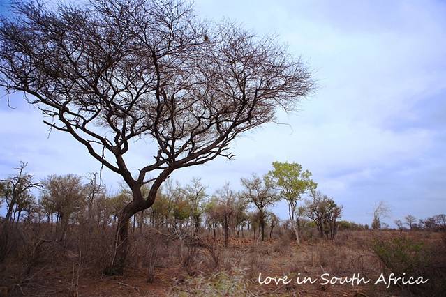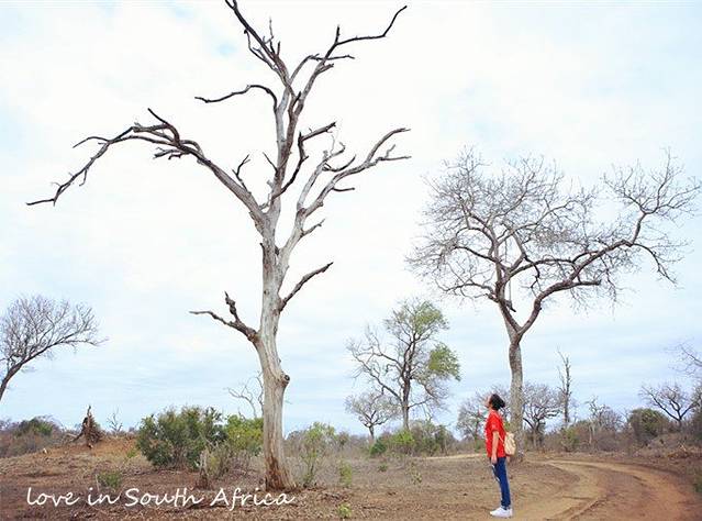我之前想象中的克鲁格,是东非大草原那样的一望无际,远远地就能看到动物们成群结队、浩浩荡荡的场景。但做了功课后发现,实际情况是,克鲁格公园是以灌木丛和稀树草原为主,有一条sabie河以及一些浅滩,整体来说视线阻挡比较严重,不能看到肯尼亚坦桑尼亚那种广阔无垠的草原风光,但也是别有一番风味。