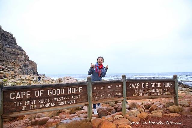 好望角是我们南非此行唯一一个遭遇旅游团的地方,为了拍这一张到此一游的游客照,我们在此地冒着风雨排了十来分钟的队。