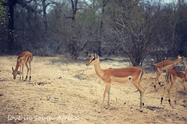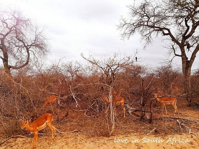 继续出发,一群又一群的黑斑羚在路边出现,它们或站或卧,有的呆立在路边和你四目相对,有的听到点风吹草动就慌张地往灌木丛深处跑去。我们也从一开始看到黑斑羚兴奋不已,尖叫、停车、拍照,到后来的直接视而不见地路过了。