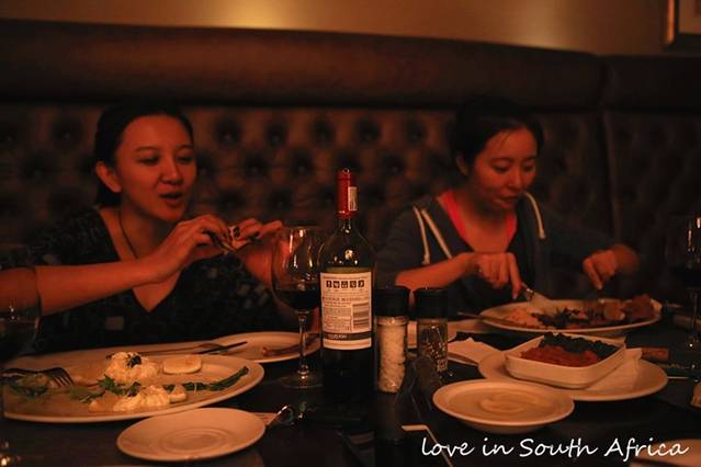 南非是世界六大葡萄产区之一,其主要的葡萄酒产区都分布在开普地区。我们在南非的每天晚个都尝试了不同的红葡萄酒和白葡萄酒,大概一百块左右就能点到一瓶还不错的酒。