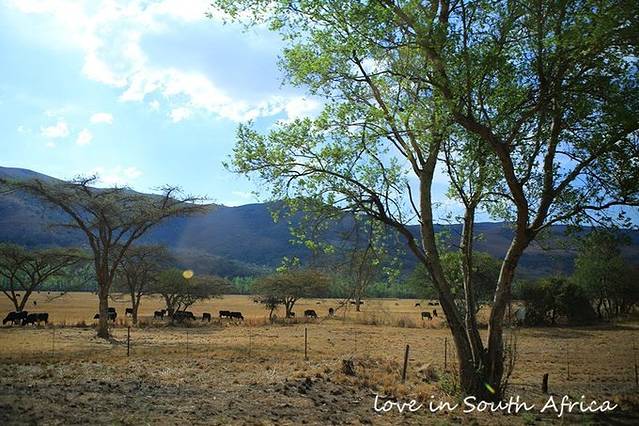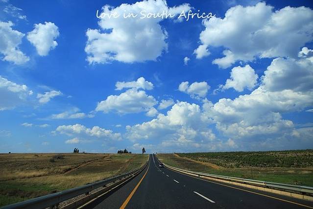 9月底10月初的南非枯黄和新绿交错,似乎春天还没有完全到来,一路天高气爽,不时可见悠然吃草的牛羊。