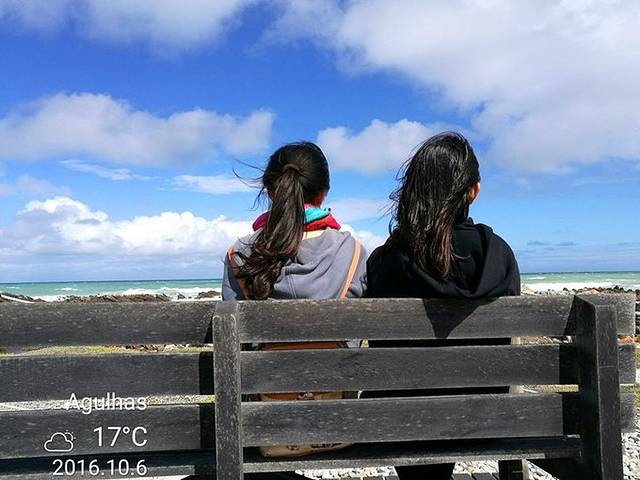 顺着栈道走几百米就来到海边,这里是真正的最南端,两大洋的分界点,但眼前海水都交融为一体,翻着激荡白浪,辨识不出哪里是印度洋,哪里是大西洋。