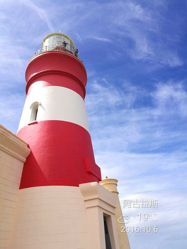 我们爬上高高的灯塔,俯瞰Agulhas角,耳边狂风呼啸,海水泛着绿宝石般的光泽。