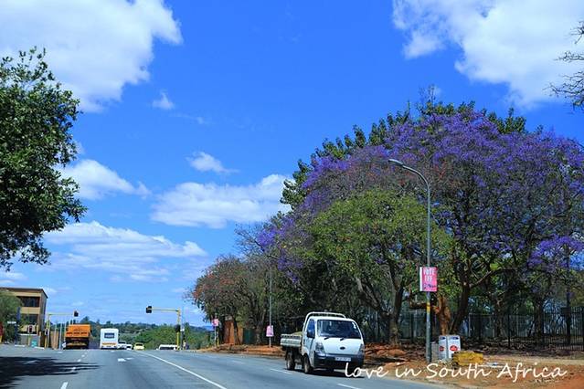 据说上面这两条是比勒陀利亚最早的蓝花楹街道,花朵繁盛。