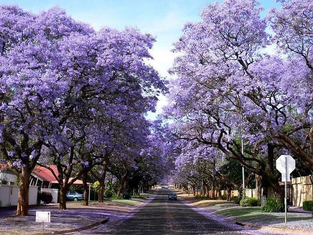(好多人也被上图撩得心痒痒,来问我这里具体是哪里,其实这张图也是我在网上看到的,但最终并没有去到。不过我也查了,南非首都比勒陀利亚看蓝花楹最好的几个地方: