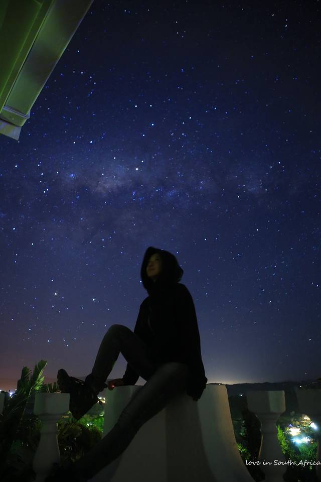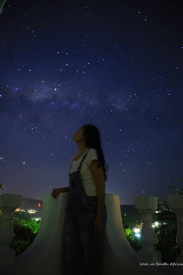 阳台上,悬挂着一道银河和满天的星辰,之前在克鲁格的几天晚上都是阴晴不定,星空总是昙花一现,今天终于有机会好好观赏。