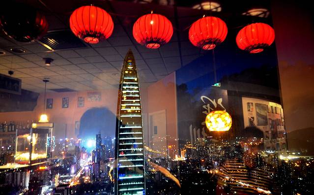 真的很一般,毕竟隔着玻璃,而且还无法将镜头紧贴玻璃,无法垂直拍摄就会出现折射。后来我干脆就在顶层等着服务员叫号好下楼了。