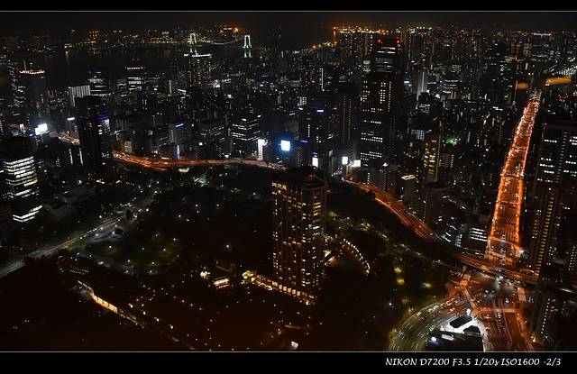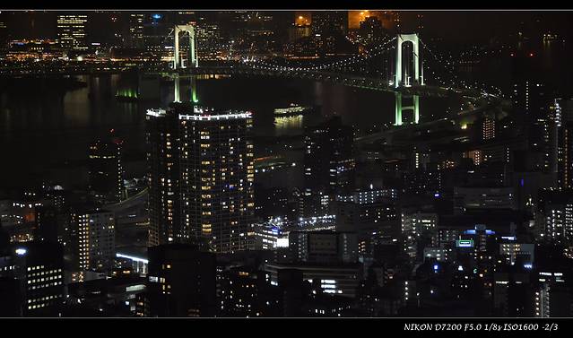 东京塔的观景平台还不如“杭州湾大桥”上的“海天一洲”,起码后者在顶层有个露天的观景台,我想办法怎么也能把相机伸到栏杆外面,避免了玻璃的阻隔。