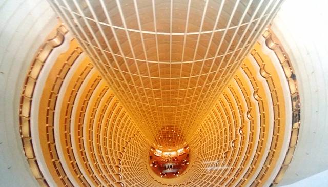 2000年我去上海金茂大厦参观时,门票是每人50.当时对高速电梯还挺新鲜。不过透过玻璃窗什么也看不见(当天大雾),只能在楼内向下拍了两张。(最下面的一层是咖啡厅)