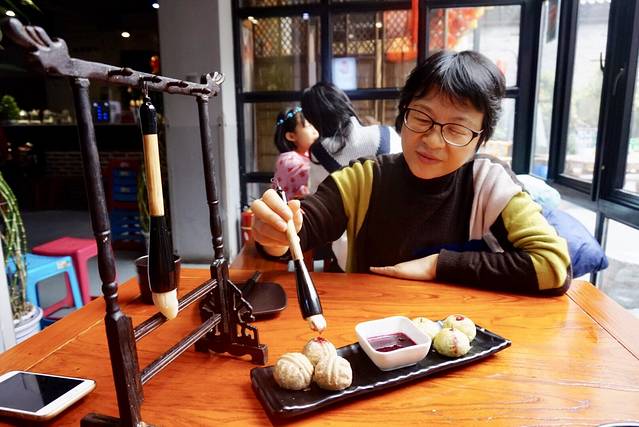 里面的布置很漂亮,很体现当地的特色,皮影,灯笼,书法各种元素,就怕你不知道自己在西安,就逼着你一定要梦回长安一把