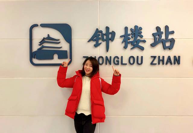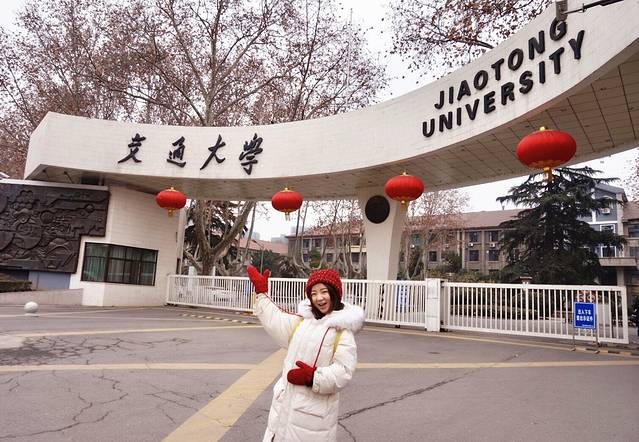 交大门口的到此一游照,白羽绒服还是要靠红帽子红手套来衬托啊