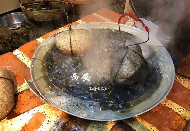 于是从因为《那年花开月正圆》的甑糕开始,剧照都摆上了,价钱也便宜,10元一份,那就来一份,甑糕的做法是这些大锅子下面有无数小洞,热气通过小洞把糯米和红枣蒸熟,味道挺不错