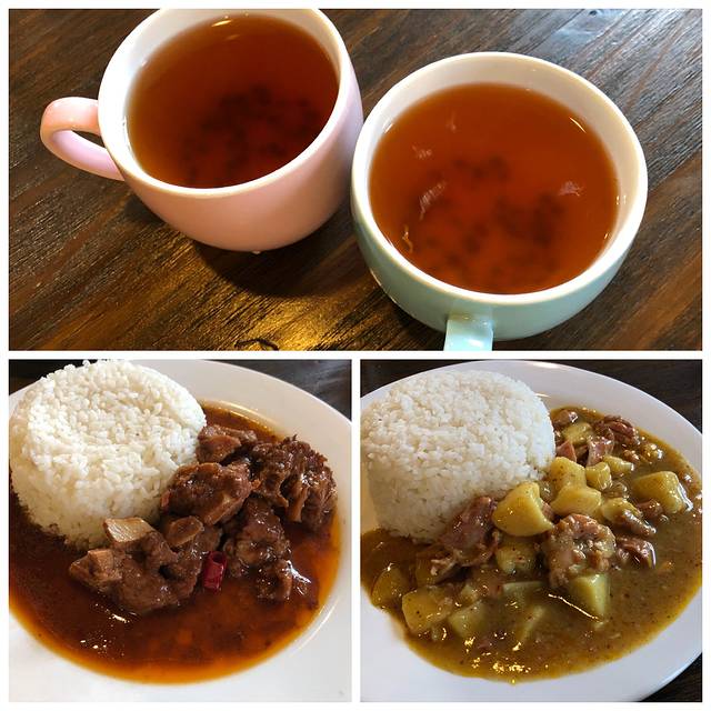 我的排骨饭比较好吃啦,百香果茶麻麻很喜欢~