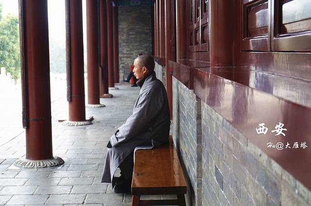 相比其他穿焦糖色衣服的僧人,这个一身高级灰的师傅一直孤身一人坐着,沉默不语,也不与其他僧众一起聊天,师傅心中想必有什么事吧