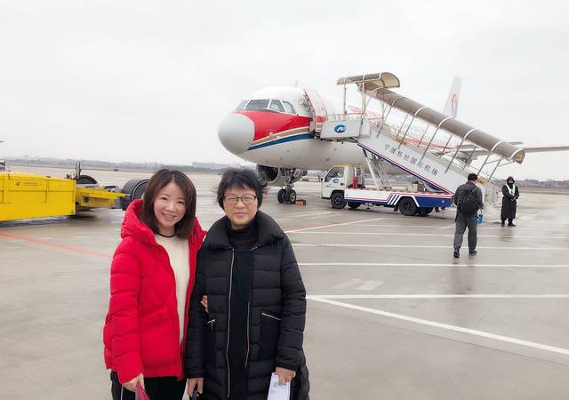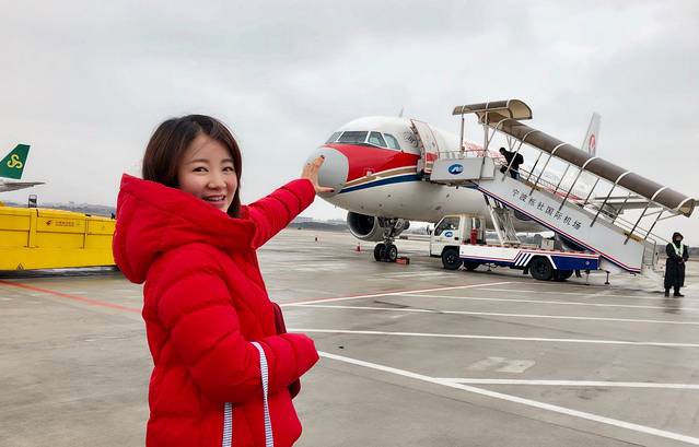 头等舱可以先走哟,还有热情的空姐帮我们拍照,还教我摆手势抓飞机头~~ “很专业啊~” 哈哈哈