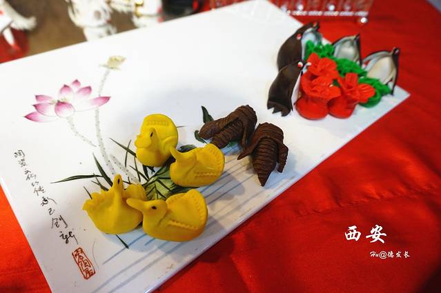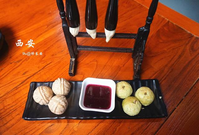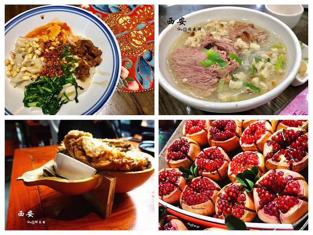 西安基本都是面食,对于面食毫无兴趣的我,还是要餐餐吃饭才过瘾的,不过个人觉得比较好吃的有肉夹馍:平生第一次吃,感觉还不错诶;羊肉泡馍里的羊肉,馍这个食物,恕我完全不能欣赏。。。;所有的面,什么油泼面,biangbiang面全都不对胃;倒是因为孙俪演的《那年花开月正圆》而火的三道菜——葫芦鸡,甑糕和泾阳茯茶都还不错。喜欢临潼的石榴汁,超甜超好喝!!!一直惦记的冰峰汽水倒很一般,就跟芬达没两样嘛~ 不少店里还有做工精致的甜点,吃了个毛笔酥,样子可爱,口感不赖。