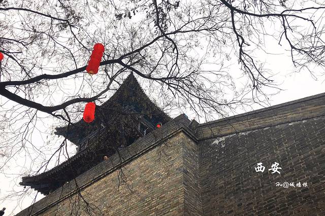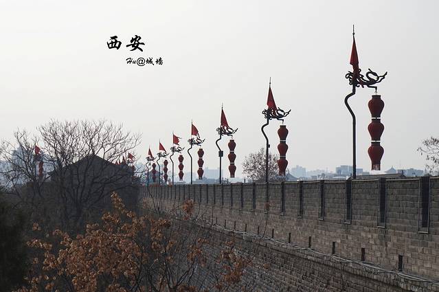 穿过了城墙,从翁城走出来,马路对面晃个公交车去西安交大溜溜,本来这是个机动项目,灯笼真是很好的点缀,古朴的城墙,没有一丝绿色的枝桠,原本毫无生气,但是有了大红灯笼,就倍觉美丽