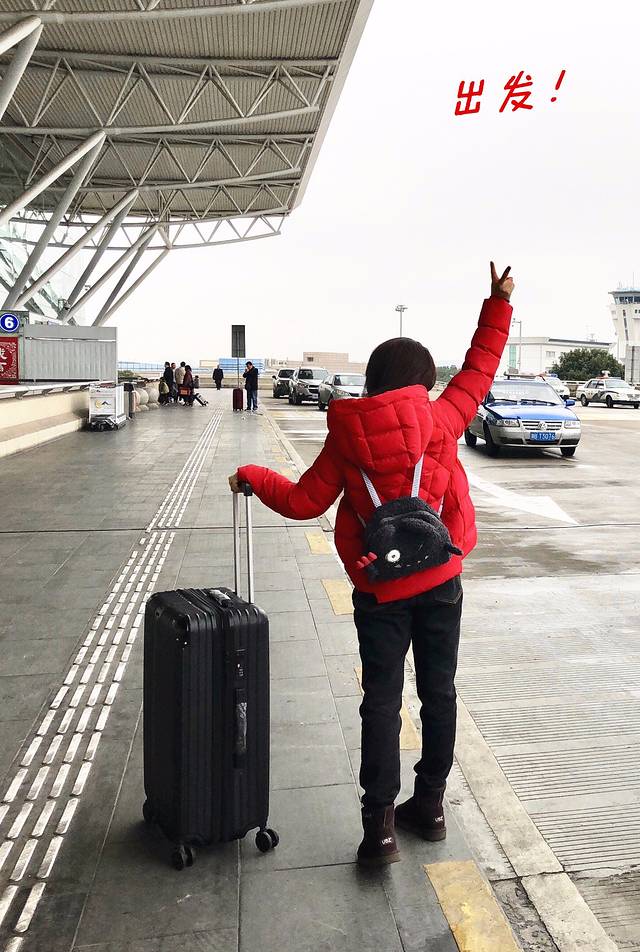 正月初一,穿着一百多块钱的拍照专用大红袄上路啦!这回行李箱也换新了,买了个能扩容的26寸,娘俩的东西一个箱子正好,其实都是我的东西。。。