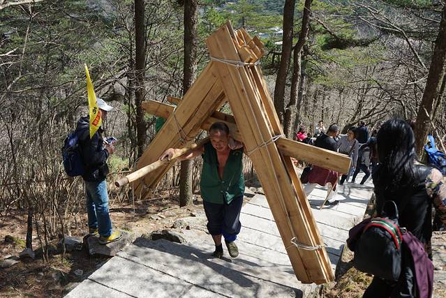 黄山的挑夫,看着他们沉沉的负重,好心疼