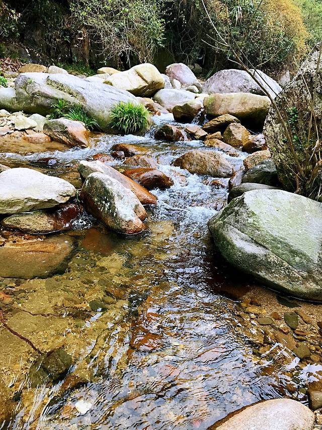 从黄山到婺源坐高铁只需要半个小时左右,我们俩个蹒跚着去了篁岭,在篁岭景区旁边的有家客栈住下,这个客栈很干净,老板一家人也很热情,并且从这个客栈沿着开满油菜花萝卜花的小路走5分钟左右,就可以到篁岭景区缆车入口,非常方便。但是我们去的时候因为篁岭比较往南些,油菜花都谢了,绿油油一片,所以我俩进入景区后看到绿绿的梯田觉得有些失望,蹒跚着玩了一会,很早就回到了客栈,客栈老板看着我们兴致不高,说时间还早啊,再去玩玩,篁岭景区旁边又个石门山大峡谷,在篁岭景区门口持篁岭门票坐免费的摆渡车就可以过去,而且可以享受门票半价,我俩犹豫了下,看到老板热情的眼神,想着来都来了就去看看吧,到了门口看到光秃秃的门口,心里有些犹豫,有点不想买票进,但是还是想着来都来了,那就进去瞅瞅吧,然后就仿佛发现了世外桃源,用一句诗来形容它就是绝世而独立,闹中取静,悠悠然在热闹的篁岭旁边,景区幽静空旷,没有人烟,安安静静的走一走,看看小溪,看看溪中的蝌蚪,看看路边的野花,看看不经意出现的大的小的瀑布,好是惬意,荡涤了我们这两天的疲惫,我的腿在玩完大峡谷之后居然奇迹般的不酸痛了。强推石门山大峡谷!