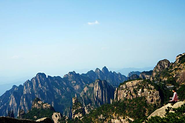 3.黄山一天足矣,路线是玉屏索道上山-到迎客松拍个照-爬俩小时左右到光明顶-经过白鹅山庄-观景台上看看红楼梦的开头场景飞来石-下行-走一个小时左右到云谷索道-坐索道下山